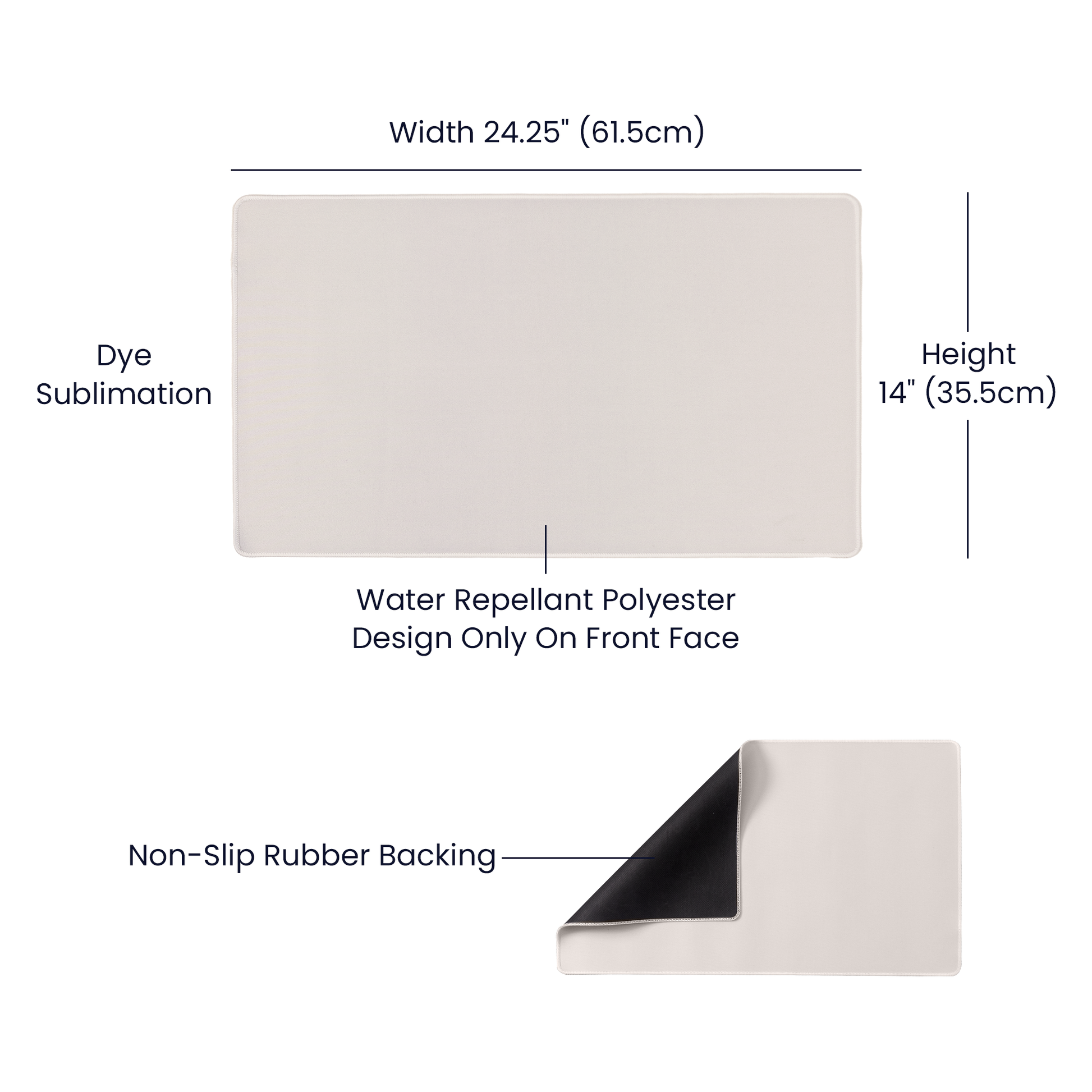 - Non-slip rubber backing